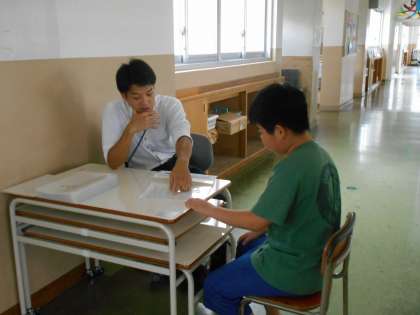 終業式のあとに、通知表を一人一人渡しました。2学期に向けて、決意を新たにしました。
