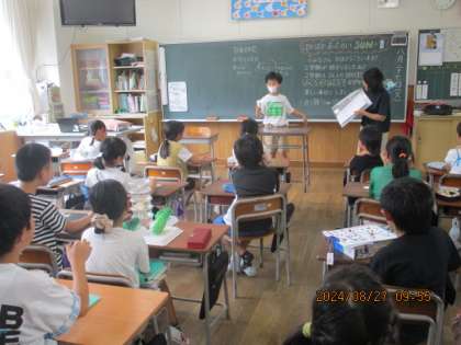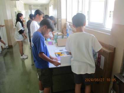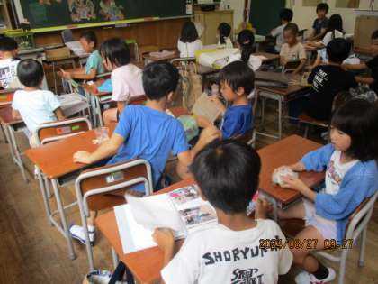 今日から2学期がスタート。校舎内に子供たち明るい元気な声が戻ってきました。友達との久しぶりの再開に、にっこり。夏休みの作品を紹介したり観察したり、思い出を語り合ったりなど、あっという間に時間が過ぎていきました。