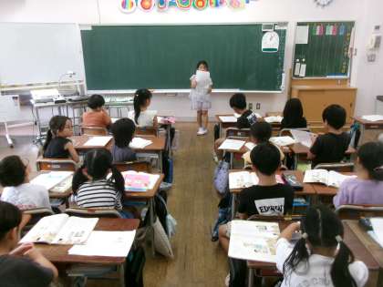 8月28日(水) 1年生 国語科「みんなにつたえよう」 公開日 2024/08/28 更新日 2024/08/28 1年生 国語の授業では、夏休みで体験した楽しいことや紹介したいことを、みんなの前で発表しました。「誰と行きましたか」や「暑くなかったですか」など、質問も上手にしていました。