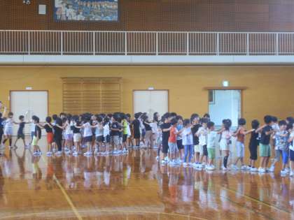 2学期の予定を聞いたり、学年みんなでじゃんけん列車や猛獣狩りをしたりしました。
