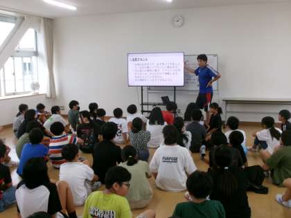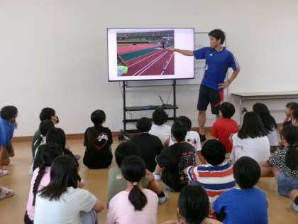 9月13日(金)に行われるチャレンジ陸上記録会の説明を行いました。実際の競技場で記録を測定する機会です。これから記録会に向けて練習を進めていきます。