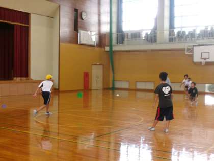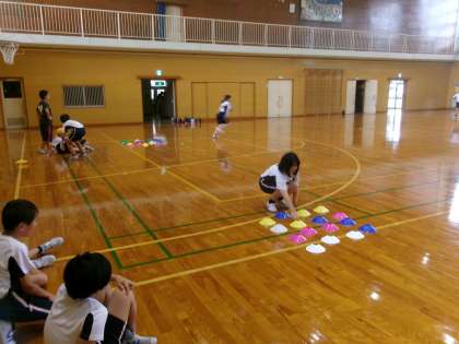 夏休み明けの体育では、レクリエーションを行いました。パズルゲームやフリスビーを使って、楽しく体を動かしました。