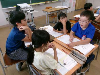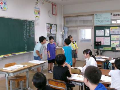 国語の授業では、「あなたなら、どう言う」という学習に取り組みました。班ごとに役割を決めて演じてみたことで、相手の立場に立って伝えることの大切さを実感していました。