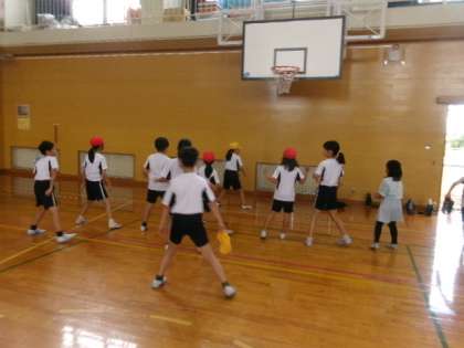 リズムダンスの練習をしています。自分の踊りたい曲を選び、チームで踊りを考えています。サビのところはしっかり踊れるようになってきました。