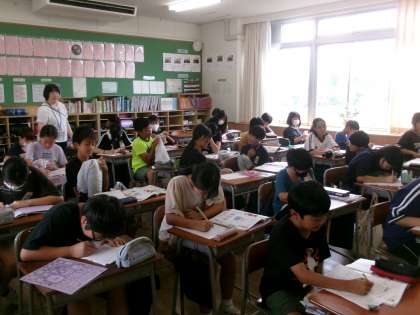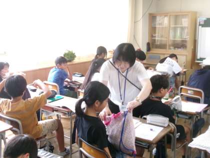 2学期最初の家庭科の授業でした。2学期はミシンを使った学習を予定しています。今日は、身近な布製品を観察し、特徴などを話合いました。