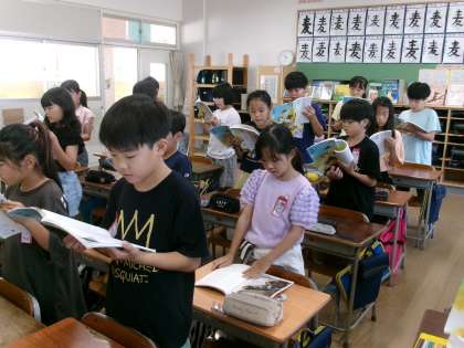 9月5日(木) 4年生 国語 公開日 2024/09/06 更新日 2024/09/06 4年生 国語では、ごんぎつねを学習しています。1学期から一生懸命音読に取り組んできた子供たちは、2学期も良い姿勢で音読をしています。ぜひご家庭でも、一緒に音読したり子供の音読を聴いたりしてみてください。