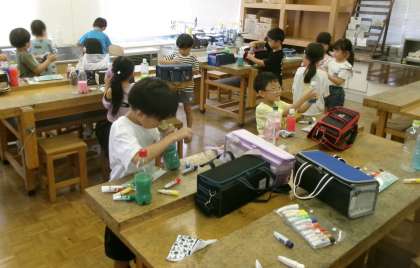 9月6日(金) 1年生 図画工作科「カラフルいろみず」 公開日 2024/09/06 更新日 2024/09/06 1年生 今日は、絵の具を使って、様々な色水を作りました。それを薄めたり混ぜたりして、並べてみると、きれいなグラデーションになりました。