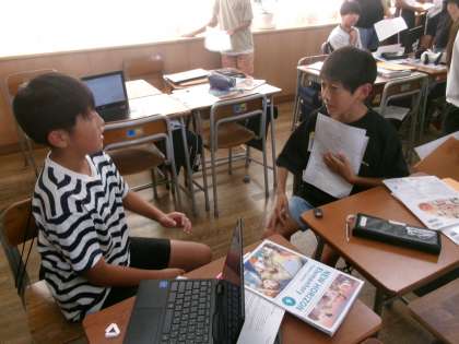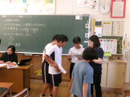 外国語の学習では、スピーチ練習の原稿を作成しています。今日は、先生に発音などを確認してもらいながら練習を進めました。