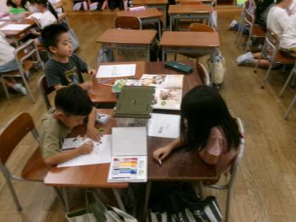 9月19日 1年生 生活科「むしだいすき」 公開日 2024/09/19 更新日 2024/09/19 1年生 今日は、学校で捕まえた虫を観察カードに記録しました。虫の色や体を真剣にみて、図鑑と比較しながら記録をしていました。