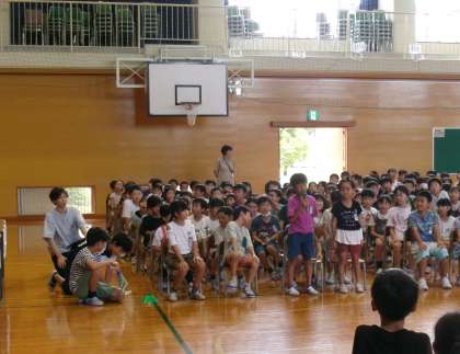 第1回の児童総会は、教室でオンラインでの参加でしたが、今日は2年生も体育館で参加しました。各委員会や学級の活動に耳を傾け、積極的に質問をしました。