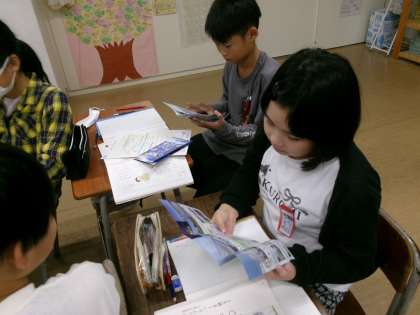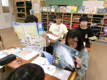 10月4日(金) 4年生 国語 公開日 2024/10/04 更新日 2024/10/04 4年生 国語では、「パンフレットを読もう」という単元の学習をしています。今日は実際にいろいろなパンフレットを見ながら、どんな工夫がされているかを考えました。