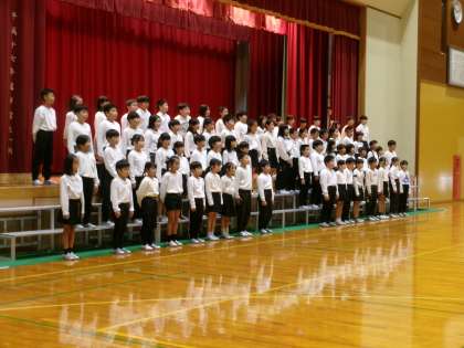 10月5日(土) 4年生 学習発表会 公開日 2024/10/05 更新日 2024/10/05 4年生 いよいよ本番を迎えた今日、子供たちは今まで練習してきた成果を発揮して精一杯がんばっていました。朝の声出しの段階から、姿勢に気を付けたり響きのある声で歌ったりして、気合い十分な様子の子供たちでした。来週には音楽会も控えているため、残りの期間でさらにパワーアップした歌声を目指していきます。
