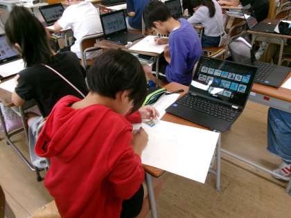 10月8日(火) 4年生 図工 公開日 2024/10/08 更新日 2024/10/08 4年生 今日の図工から、「そうぞうしてえがこう」という単元の学習に入っていきます。今日は「100かいだてのいえ」を読み聞かせしてもらった後、自分の好きな動物を選んで部屋のデザインを考えていきました。