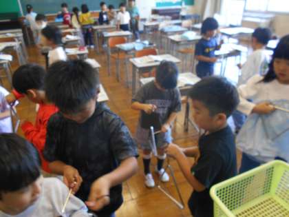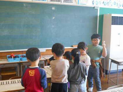 10月10日(木)1年生 音楽 公開日 2024/10/11 更新日 2024/10/11 1年生 ウッドブロック・すず・トライアングルを鳴らしてみました。 鳴らし方によって音が変わることを体感しました。