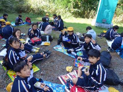 下山後は、城前峠にて昼食を食べました。登山後のお弁当の味は格別だったようです。
