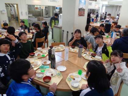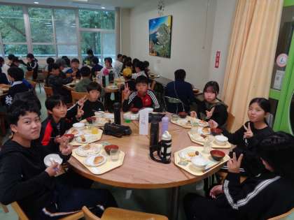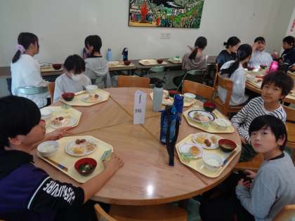 朝食の様子です。一日を元気よく過ごせるよう、もりもり食べる子供たちです。
