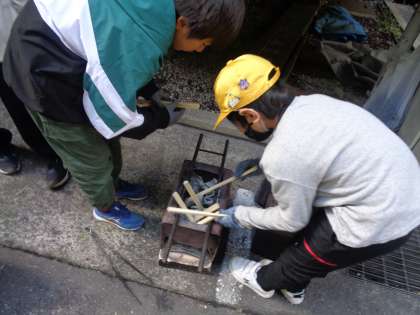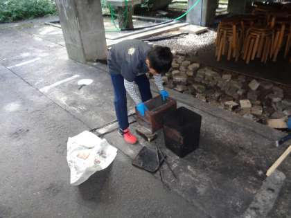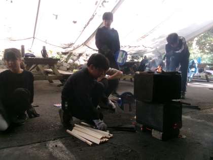 生地を発酵させている間に、火起こしの準備を行いました。木や着火剤の位置を調整して着火です。
