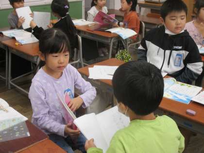 10月15日(火)1年生 国語 公開日 2024/10/15 更新日 2024/10/15 1年生 「くじらぐも」を読んで、好きなところをペアで伝え合いました。 相手の方をよく見て、聴く姿勢ができてきました。