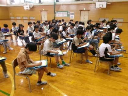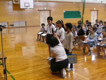 大久保の田んぼについてお話を聞きました。大久保でどんなお米が獲れるかやどれくらい田んぼがあるかなどを聞きました。子供達もたくさん質問をし、真剣に話を聞いていました。