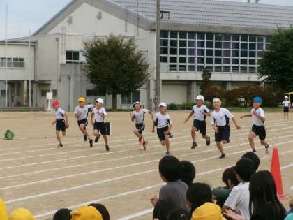 今日は全校でダッシュ王選手権が行われました。4年生からは、男女各8名の代表選手が出場し、みんな最後まで諦めずに走りきる素敵な姿が見られました。見ている人たちも大きな声援を送り、精一杯応援していました。選手の人たちは「みんなの応援の声が聞こえてさらにがんばろうと思えた」と話していました。