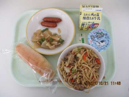 10月21日(月) 今日の給食 公開日 2024/10/21 更新日 2024/10/21 給食室から 今日の献立は、減量コッペパン 焼きそば あらびきウィンナー 大根サラダ ヨーグルト 牛乳 でした。