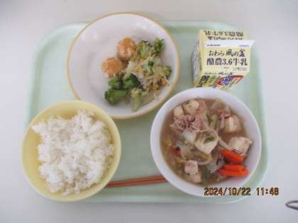 今日の献立は、ご飯 豚すき焼き 人参シューマイ コーン和え 牛乳 でした。