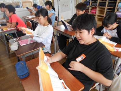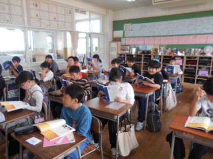 5年生の国語科の学習の様子です。暗唱に向けて、母音を意識した音読や教科書を見ずに練習しました。
