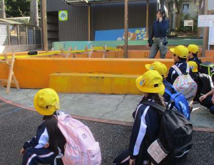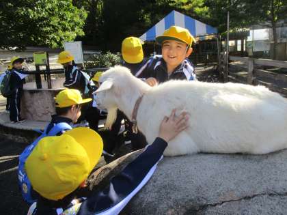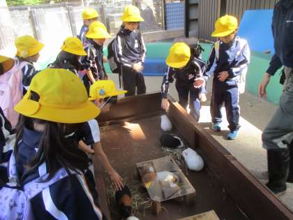 タイミングよく、モルモットの橋渡りを見学することができました。その後は、えさやりかふれあいを選んで体験しました。