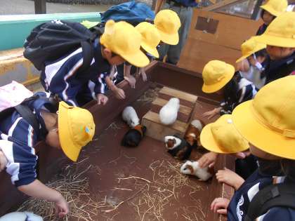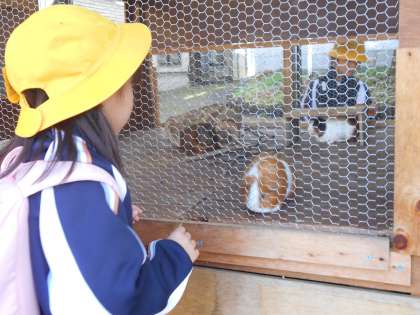 モルモットに触ったりえさをやったりしました。