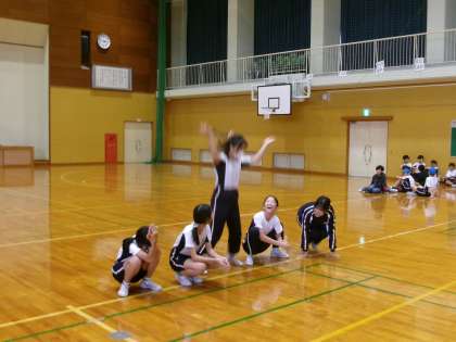 10月25日(金) 6年生 体育 公開日 2024/10/26 更新日 2024/10/26 6年生 体育では、表現運動の学習を行っています。今日は、テーマに沿った動きをグループごとに考え、表現しました。