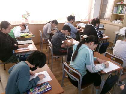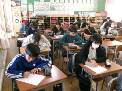 朝のチャレンジタイムの様子です。今日は、算数の復習プリントに真剣に取り組みました。