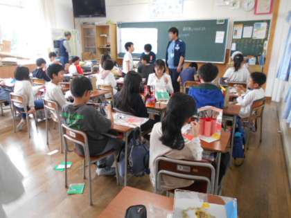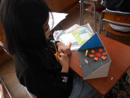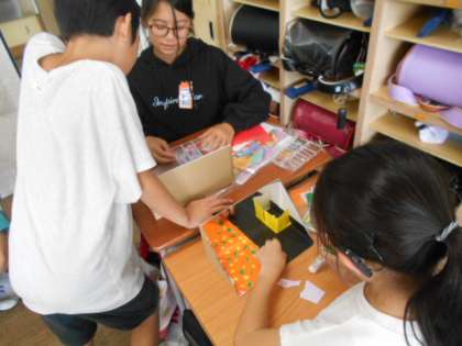 5年生の図画工作科の学習の様子です。色紙や毛糸など様々な材料を使いました。