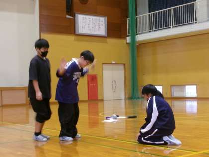 体育では、表現運動に取り組んでいます。前回に引き続き、テーマに沿って、様々な動きを体で表しました。