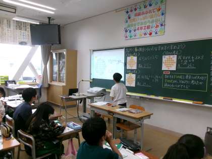 算数の授業では、自分の考えを説明する機会を大切にしています。図や式を使って考えた方法を、クラスのみんなにわかりやすく伝えることを意識して言語化している様子が見られます。