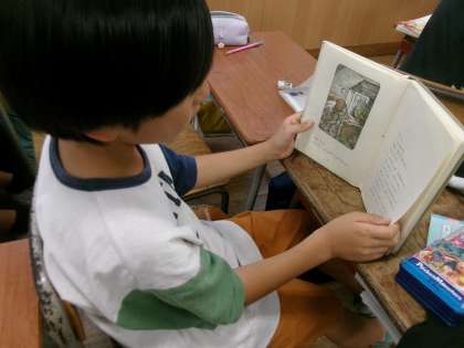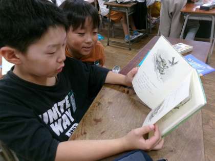 国語科「お手紙」の学習が終わろうとしています。教室やろう下に、関連図書の絵本を置いています。がまくんとかえるくんのシリーズを読んで、登場人物をより深く理解したり、物語の面白さを味わったりしています。