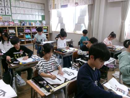 漢字同士の大きさに気を付けながら、「白馬」を書きました。最初にみんなで気を付けるポイントを話し合い、前回の作品からどこを直したら良いか意識して書いている様子が見られました。