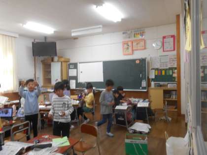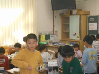おもちゃ作りの学習が始まりました。似たものや同じものを作っている子供達同士でグループになり、助け合ったり教え合ったりしながらおもちゃを作っています。遊ぶ中で改良しながら、もっと楽しく遊べるように工夫していきます。