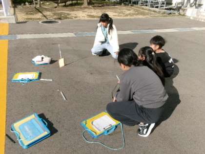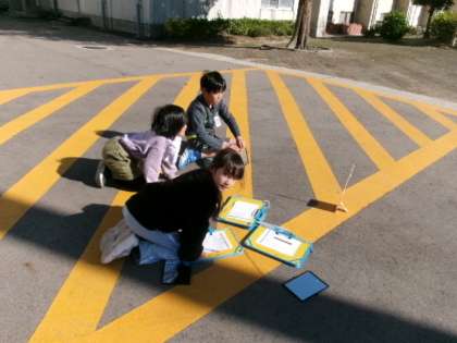 11月8日(金) 3年生 理科 公開日 2024/11/08 更新日 2024/11/08 3年生 外に出て、日光の実験を行いました。「鏡で跳ね返した光がどのように進むか」や「光が当たったところの温度がどう変化するか」を調べました。変化を見逃さないように、実験に取り組みました。