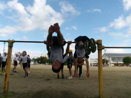 11月11日(月)2年生 鉄棒遊び・Sケン・折り返しリレー 公開日 2024/11/11 更新日 2024/11/11 2年生 さわやかな秋晴れの下で、各クラスごとに体を動かしました。 鉄棒遊びでは、上がり技から支え技、下り技の連続技にチャレンジしました。 Sケンは、曲がっている白線の両端から、ケンケンをして進み、出会ったらじゃんけんをする遊びです。笑顔で大盛り上がりでした。