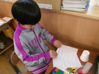 国語の学習では、「紙コップ花火の作り方」という説明文を読んでいます。まずは、自分で文を読んで作ってみました。大切な言葉を落とさずに読む力をつけていきます。