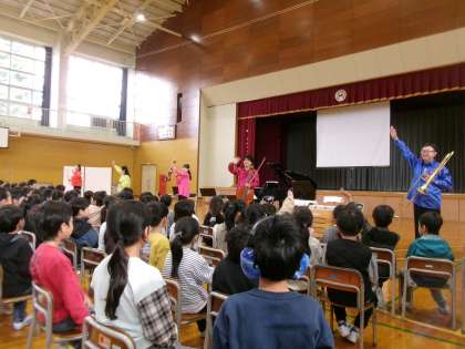 11月13日(水)2年生 学校コンサート 公開日 2024/11/13 更新日 2024/11/13 2年生 楽しいアンサンブルを聴きました。教室に帰ってくると、「楽しかったー!」と笑顔があふれていました。