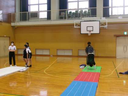 11月18日(月) 6年生 体育 公開日 2024/11/18 更新日 2024/11/18 6年生 体育は、マット運動の学習が始まりました。今日は、久々のマット運動ということで、これまでに学習した技を練習しました。