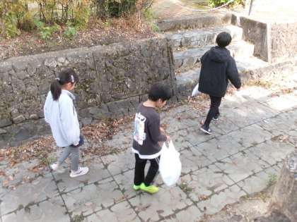 11月20日(水) 4年生 総合的な学習の時間 公開日 2024/11/20 更新日 2024/11/20 4年生 総合的な学習の時間には、ごみ問題を解決するためにできることを考えています。今日は実際に外に出てごみ拾いをしました。グラウンドや校舎の周りだけでも、思っていたよりごみが落ちていることに気付きました。