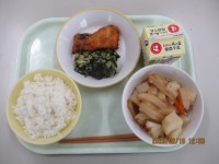 今日の献立は、ご飯 焼き肉丼 ナムル 中華スープ 味付け小魚 牛乳 でdした。