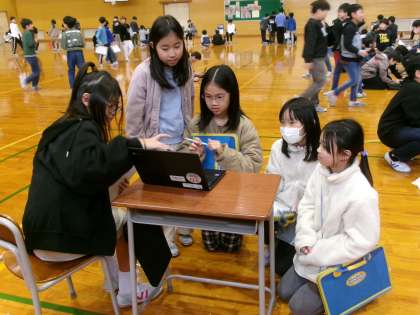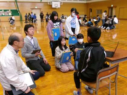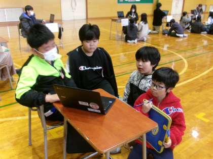 総合的な学習の時間に、5年生の発表を見に行きました。写真は1組の様子です。