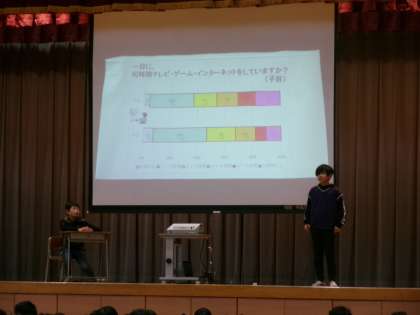 学校保健委員会が行われました。委員会や各クラスの発表を通して、メディアの使い方や睡眠の大切さについて学びました。