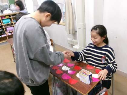 外国語の時間には、自分の欲しい具材を伝えてオリジナルのパフェを作りました。フルーツの名前や数など、学んだ英単語を使って会話する姿が見られました。できたパフェを見て、みんな嬉しそうな表情でした。