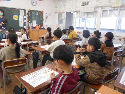 はしの持ち方名人になれるアイテムを使って、正しい持ち方を確認しました。