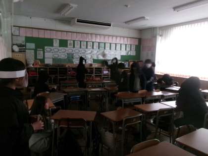 係活動で考えた企画発表を行いました。紙飛行機大会やお化け屋敷など、趣向を凝らした発表をみんなで楽しみました。