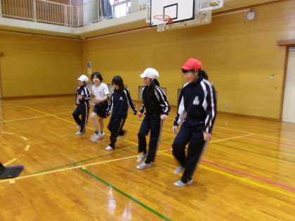体育では、ダンスを練習しています。各チームに分かれて曲を決め、オリジナルダンスを考えながら作り上げていきます。